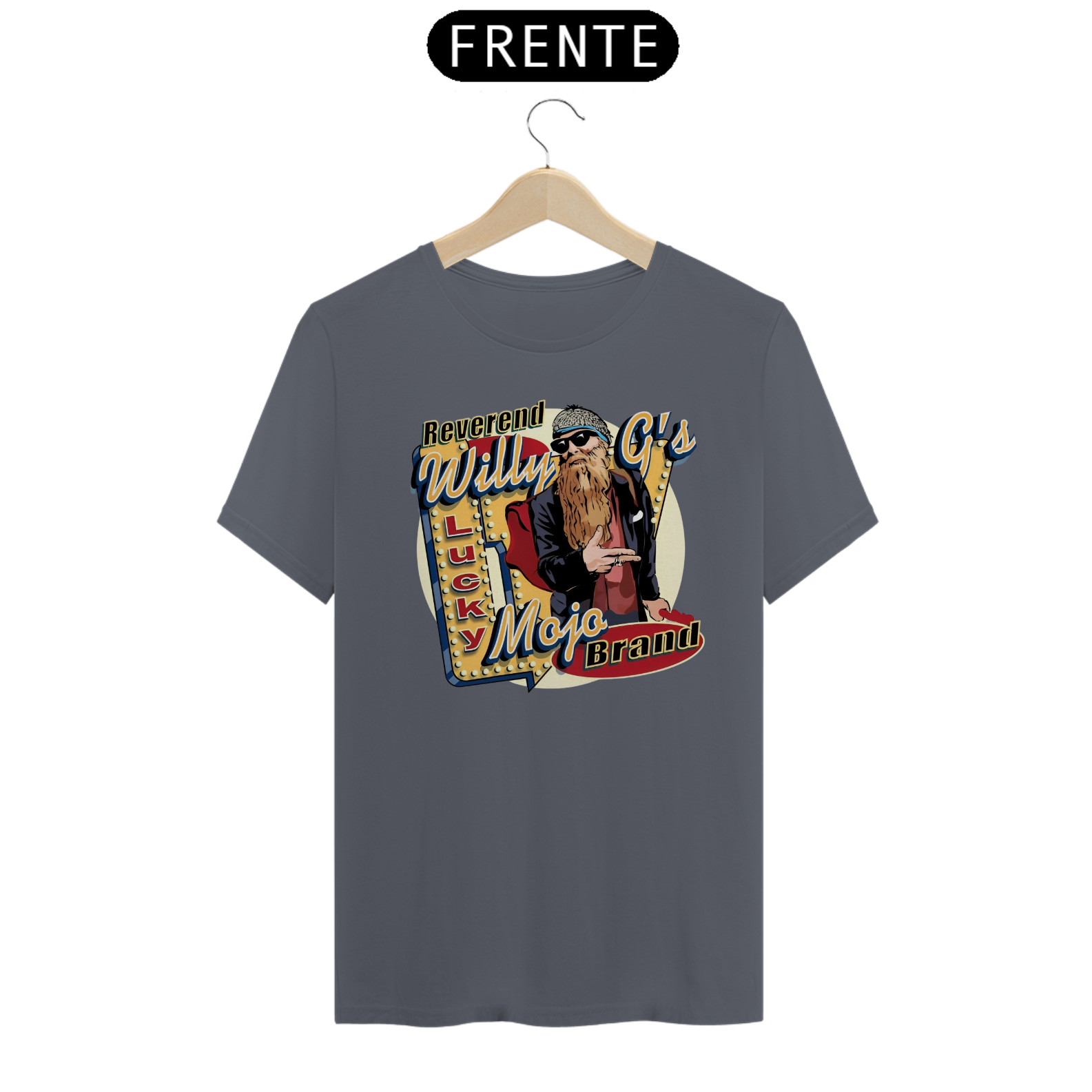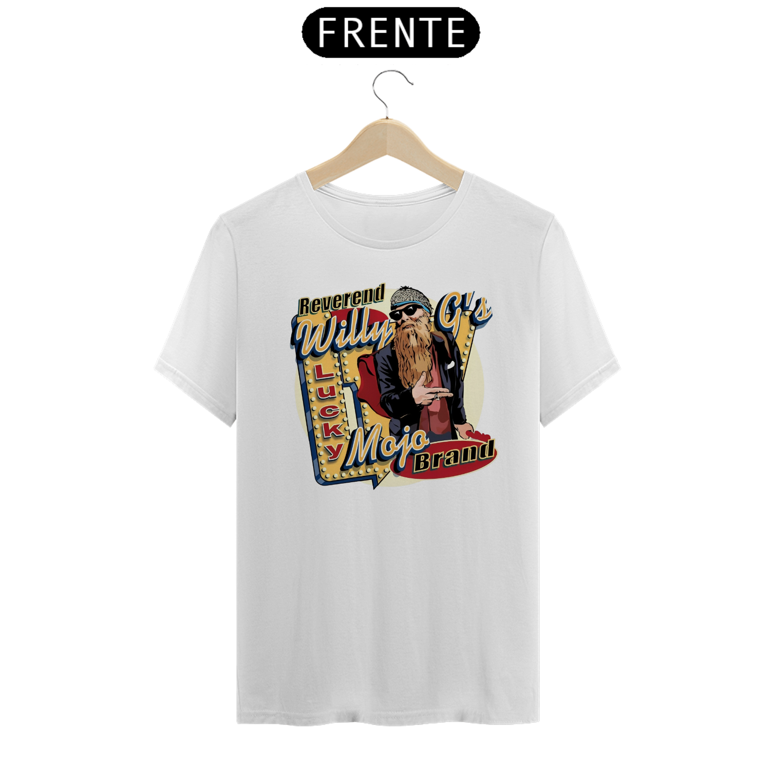 Camiseta estampada com a lendária barba e o som inconfundível do ZZ Top. Celebre a fusão única de blues e rock.